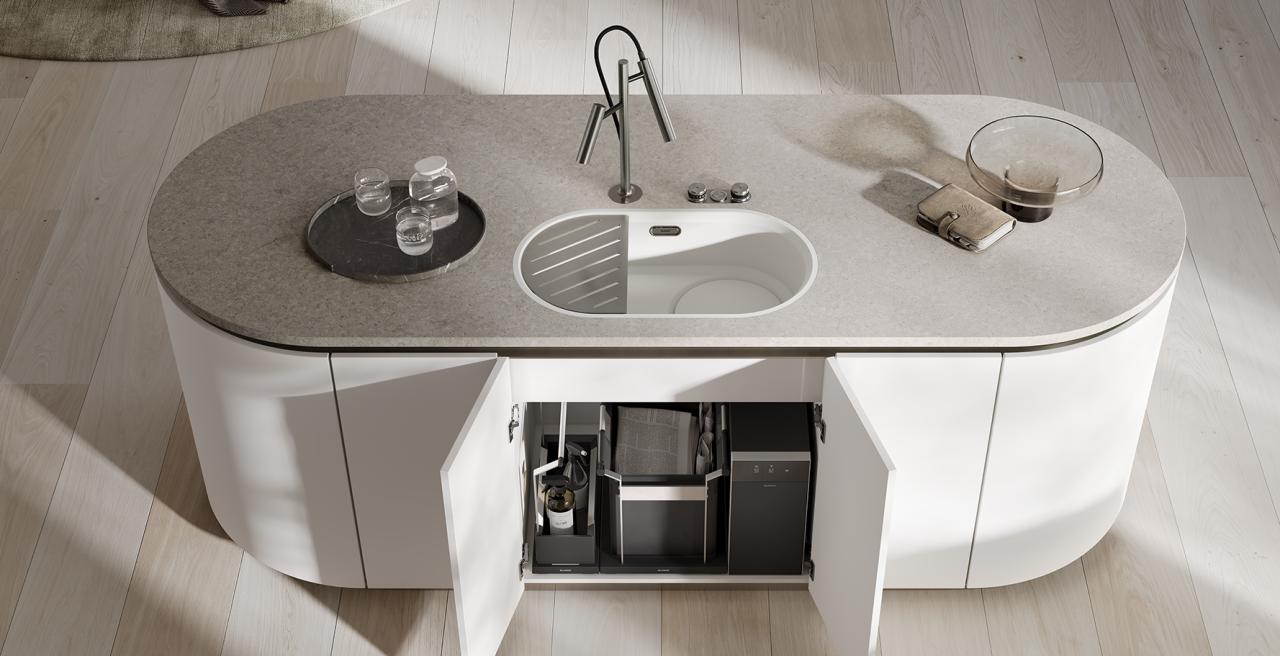 Alles an einem Platz – bestehend aus Armatur, Spüle und Abfall-/Organisationssystem Ihrer Wahl.