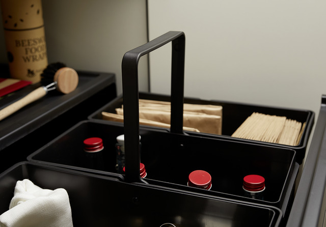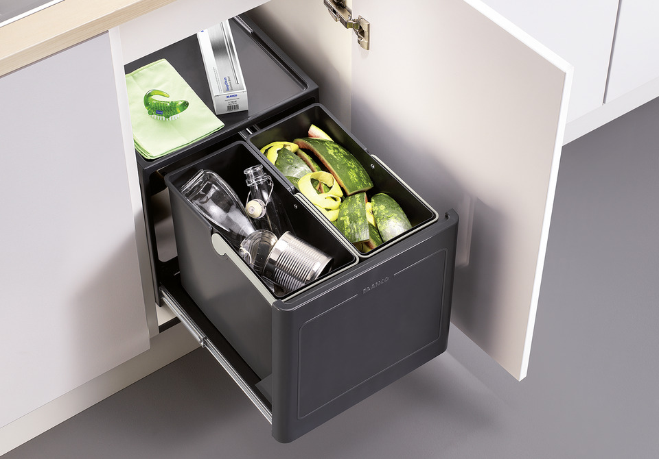 - Kompaktes System mit Türmitnehmer zum automatischen Öffnen des Abfallsystems beim Öffnen der Tür