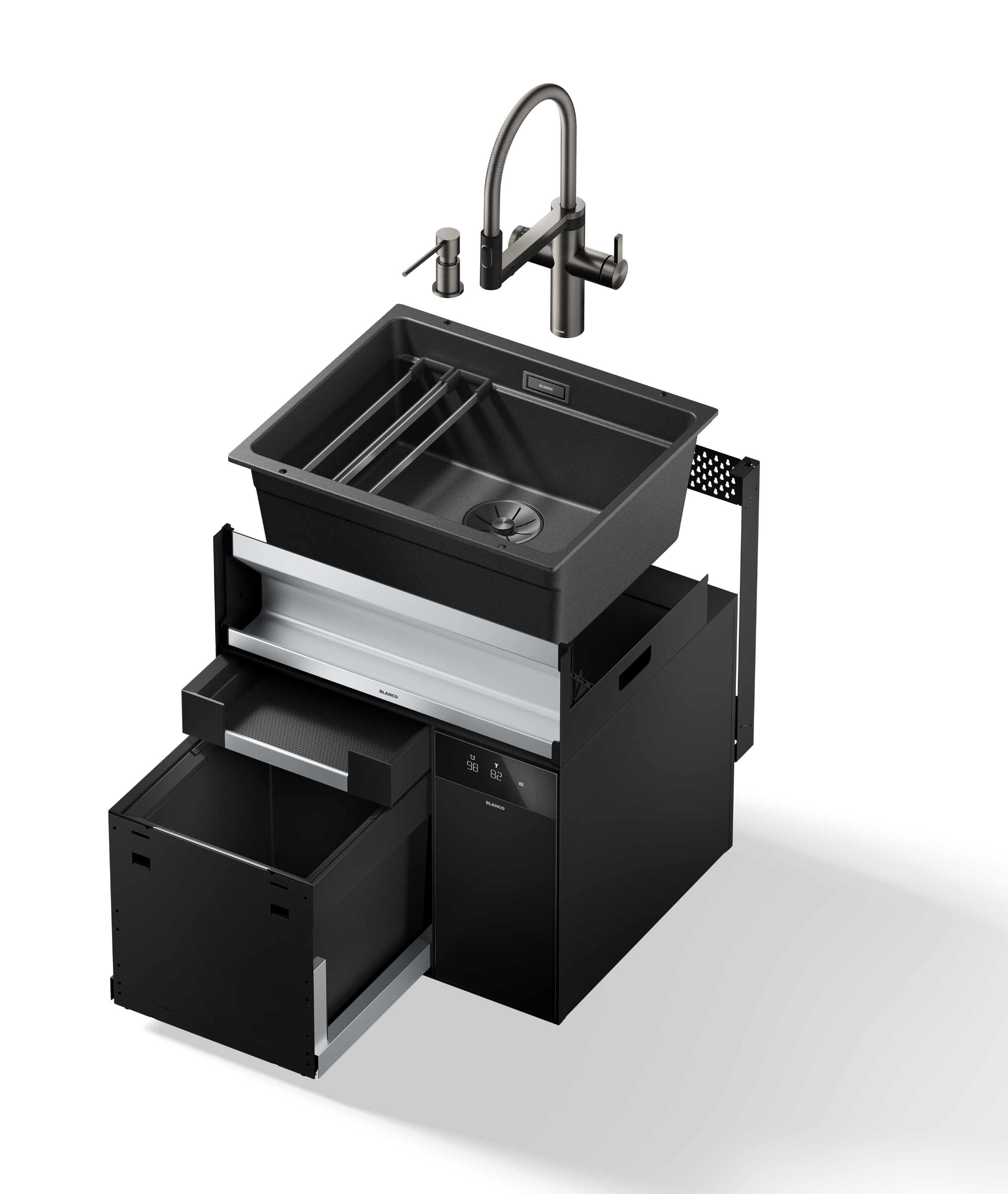 Ablaufgarnitur 1x3,5'' 1x1,5'' mit Ablauffernbedienung Überlauf cover rund InFino