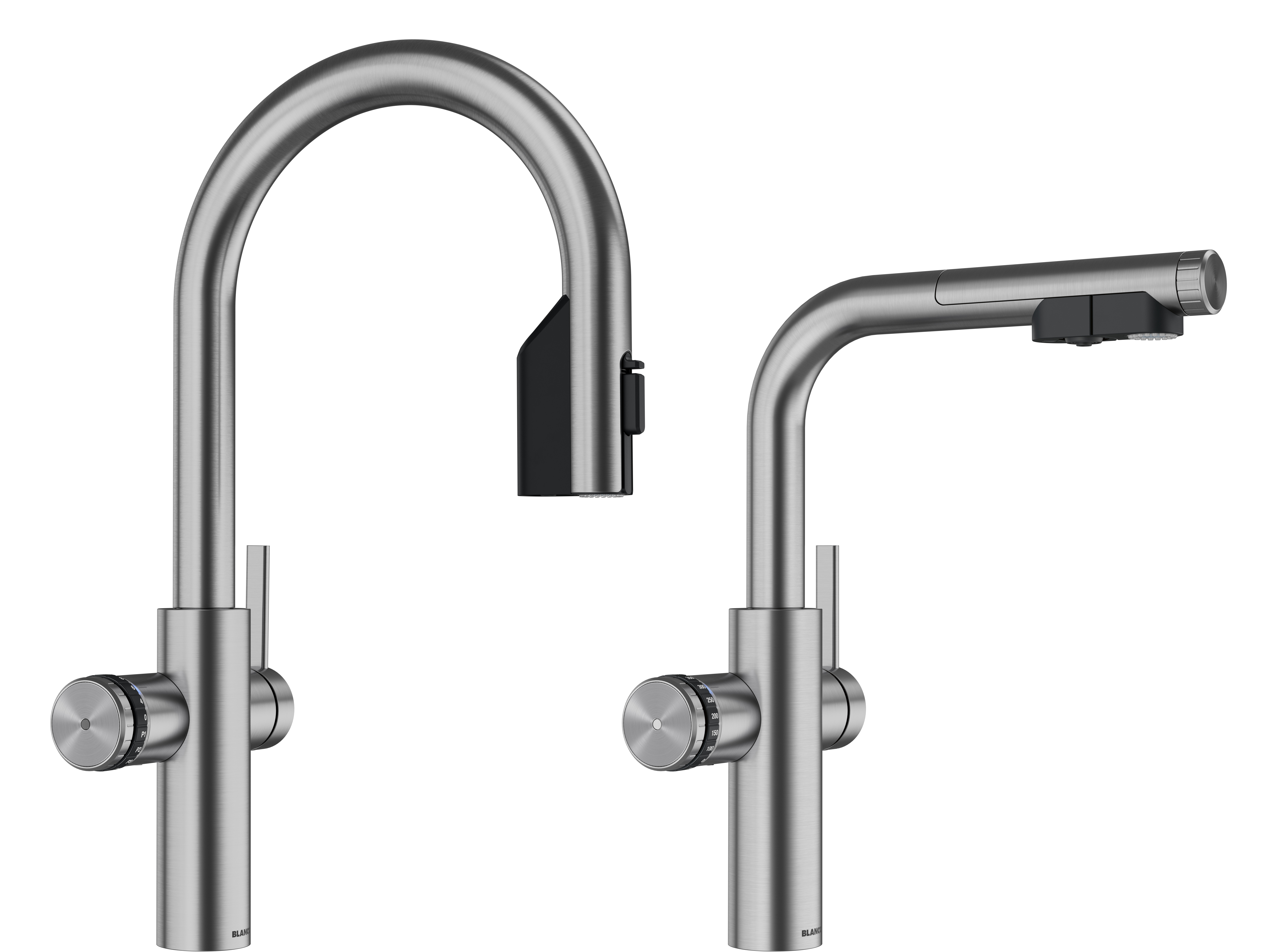 ...aus einem Wasserhahn aufbereitetes gefiltertes, gekühltes Wasser – still, medium-sprudelnd oder voll-sprudelnd sowie kochend heiß! Und das, mit dem multifunktionalen Drehrad, immer in genau der gewünschten Menge. Natürlich spendet unser Wassersystem BLANCO CHOICE auch normales Leitungswasser, warm und kalt – aus einem separaten Auslauf.