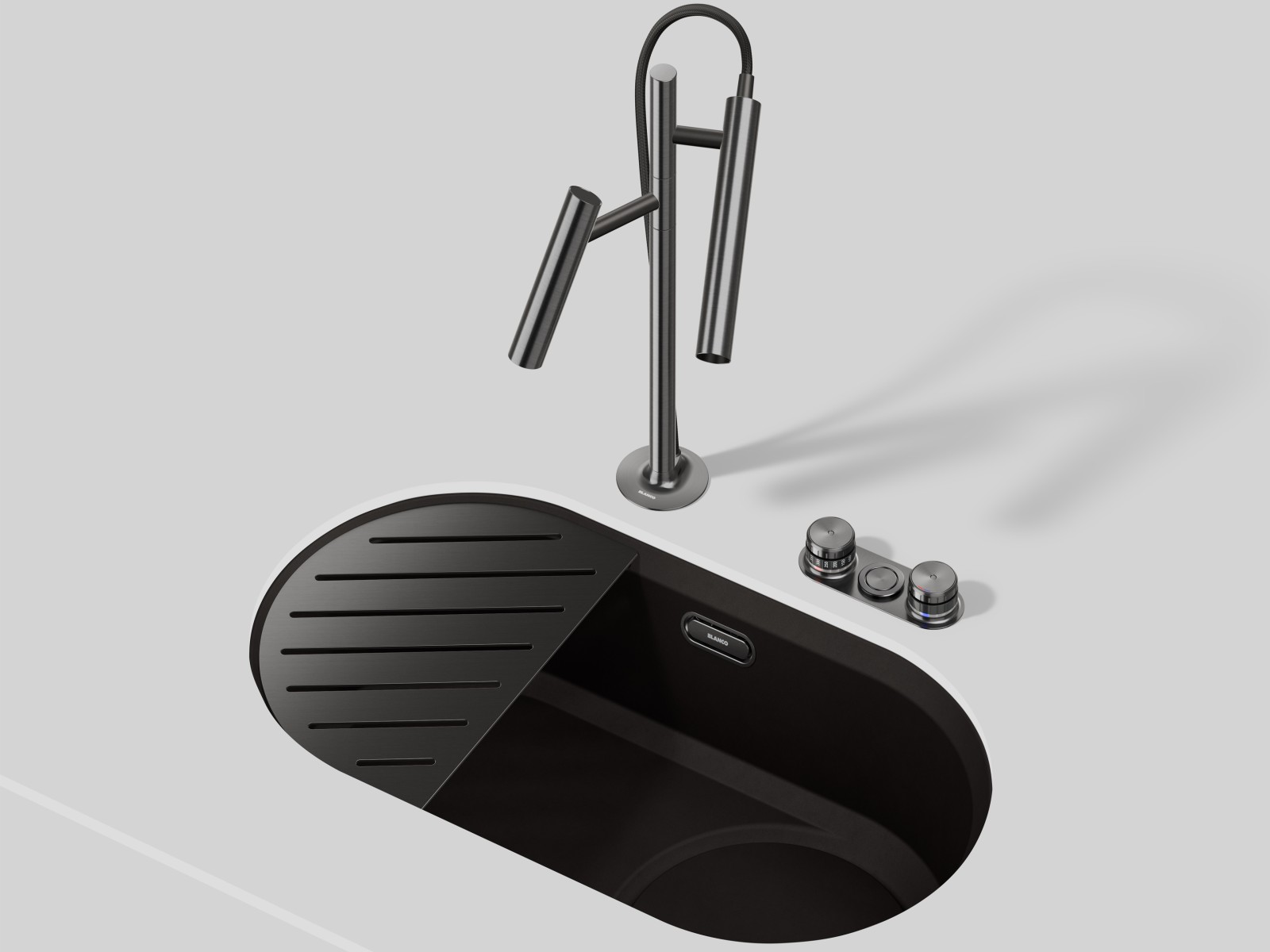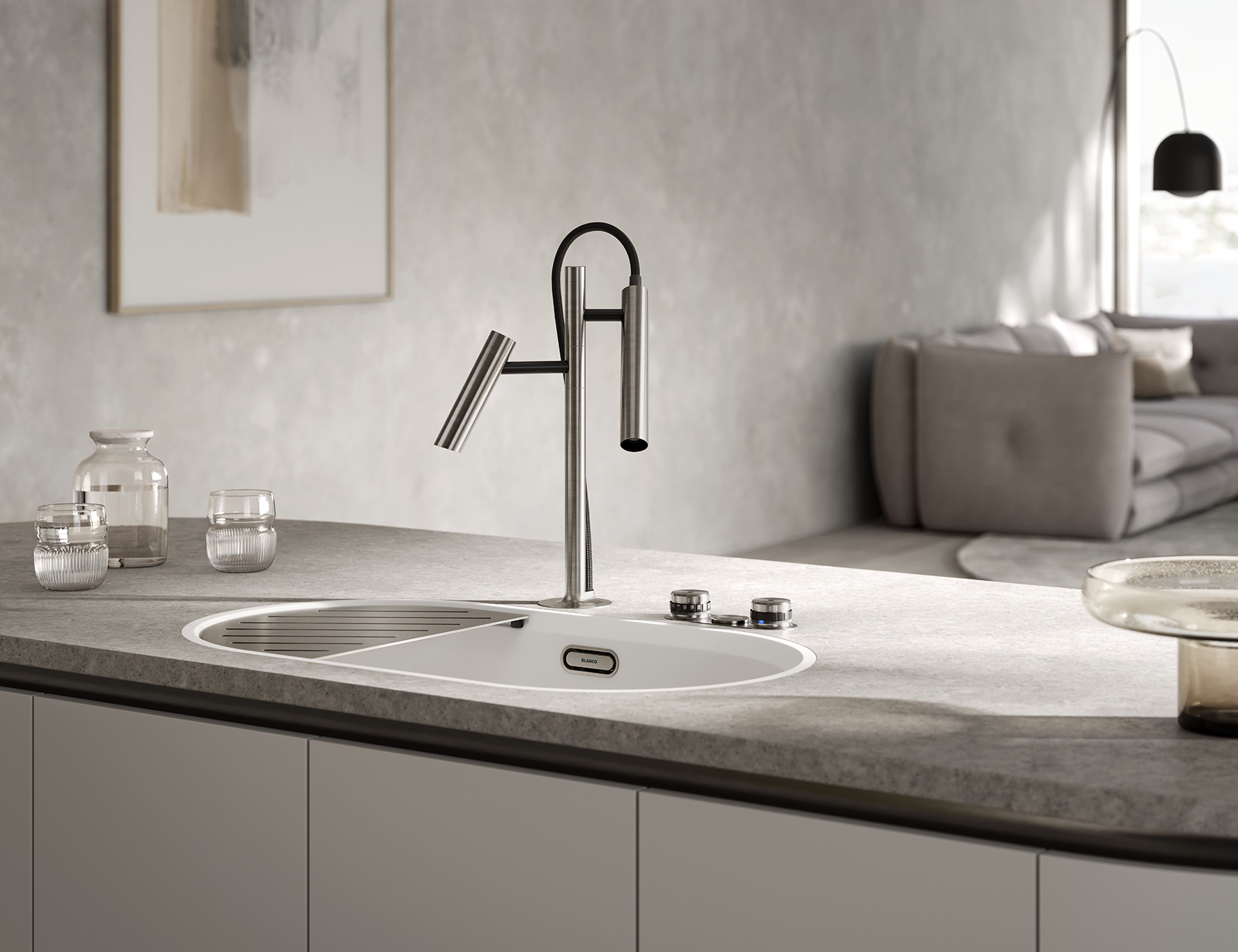 Design-Highlight aus Armatur LUNEOO und Spüle OOVALON