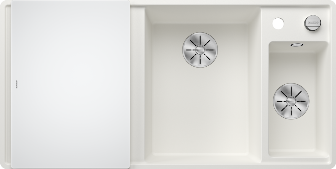 Abtropffläche: Ja | Ausführung: mit Glasschneidbrett | Position Becken: Becken rechts | Installations Optionen: 2 | Untermaß: 600 mm