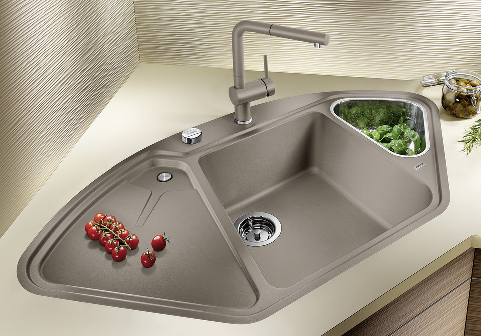 - Ergonomische Anordnung von Becken, Zusatzbecken und Abtropffläche
